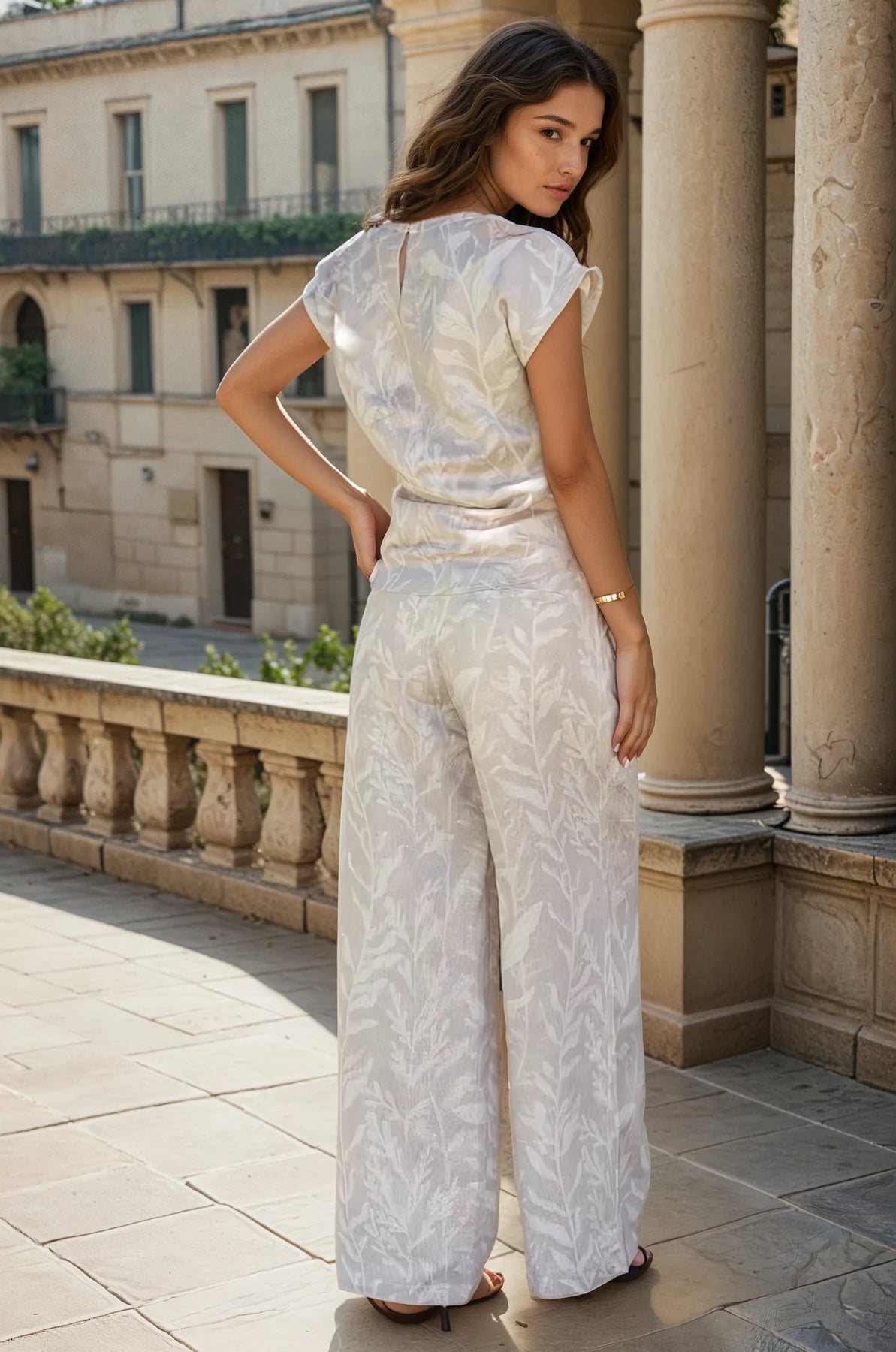 Two piece linen set with gold details