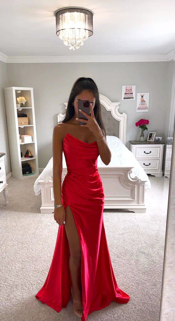 Nicola asymmetrical satin gown in red